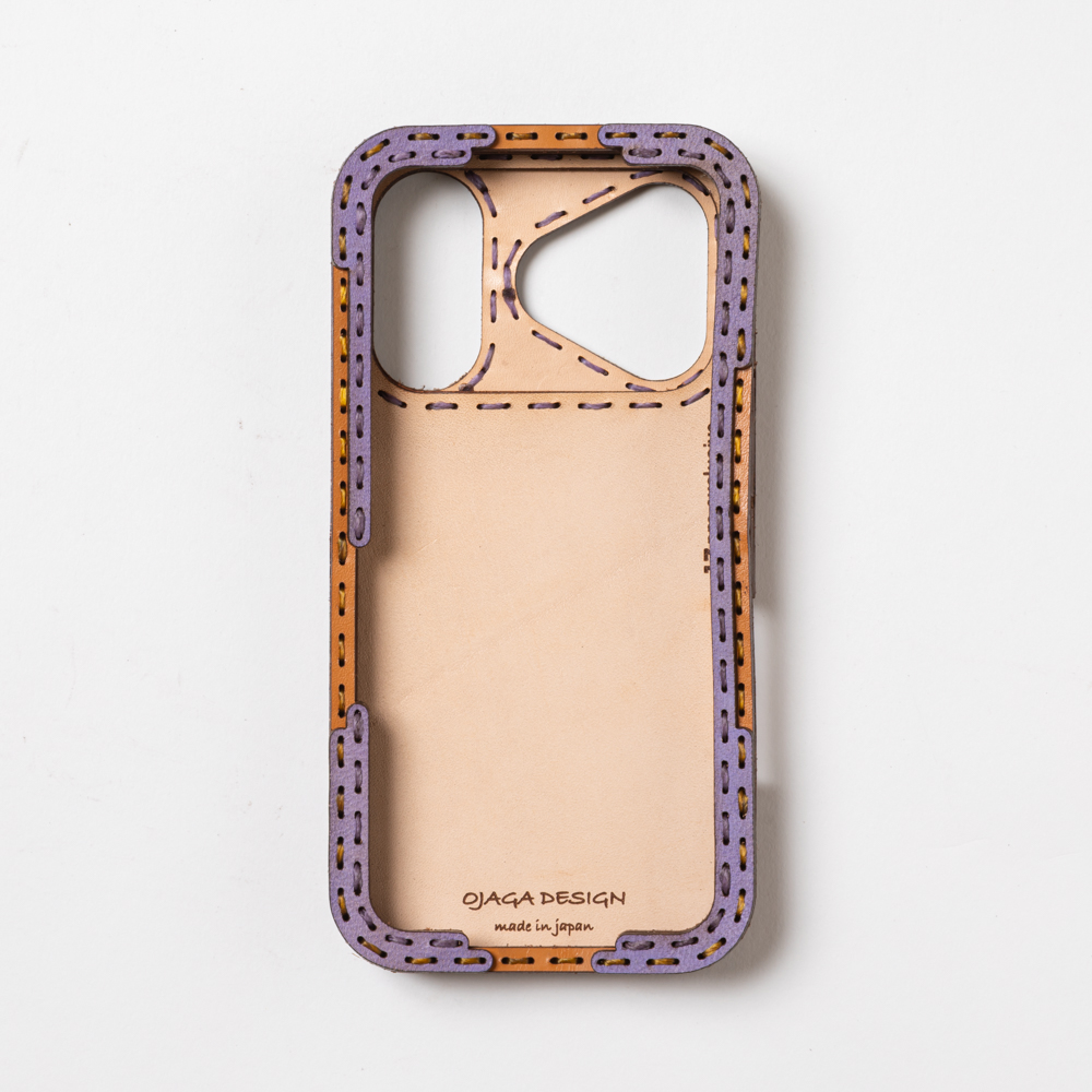 ケース側面をすべてレザーで覆った保護性の高いデザインで、サイドボタンはケースの上から操作可能です。