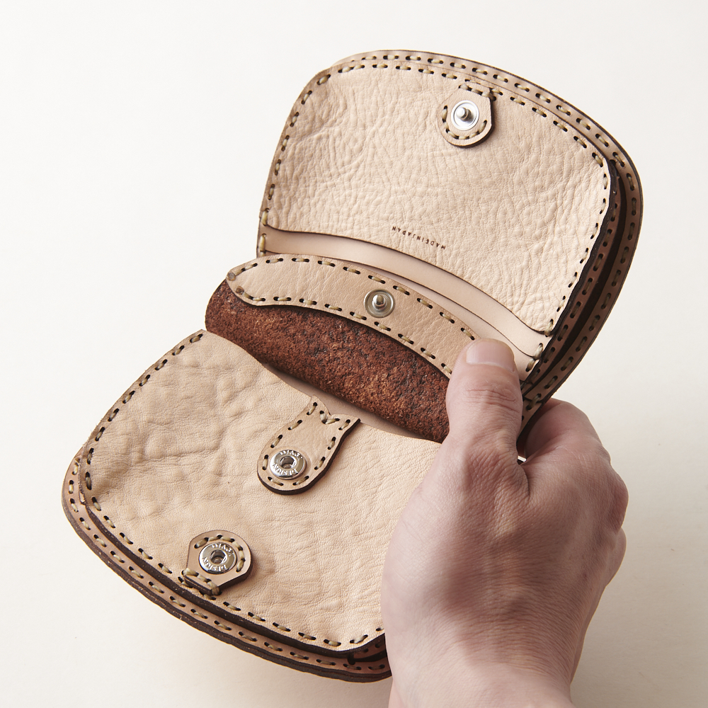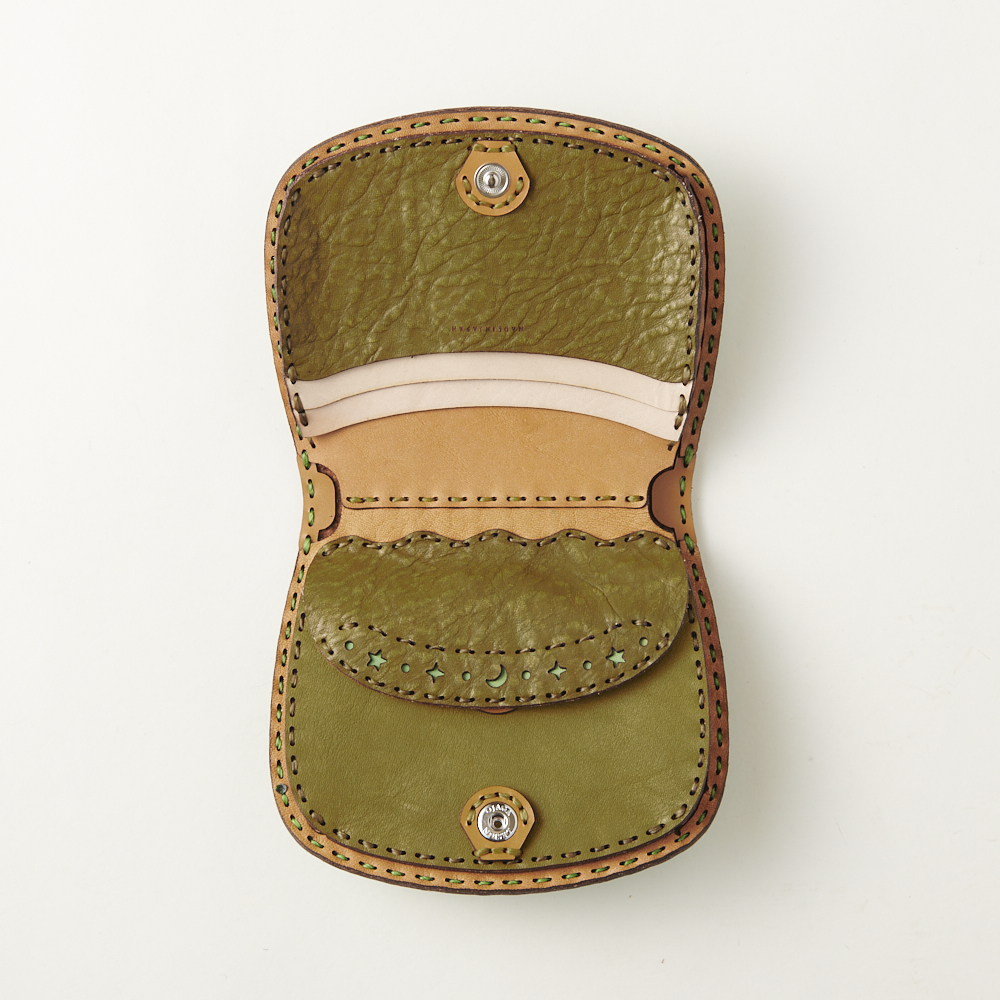 シンプルなデザインのショートウォレットです。外側はカラーが楽しめるオジャガスターのみを配置したシンプルなデザインで、内側はたくさんのカラーを使った開ける度に楽しくなるようなアイテムに仕上がりました。ボタンタイプのコインポケットが付いたショートウォレットは、コインポケットに月と星のくり抜きを施しました。丸みを帯びた曲線が特徴的で、シンプルな中にも遊び心のあるデザインです。※商品のDカンはオプションで取り付け可能です。実際の商品にはDカンは含まれません。