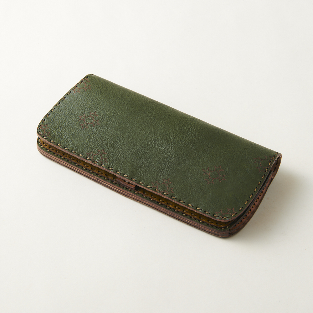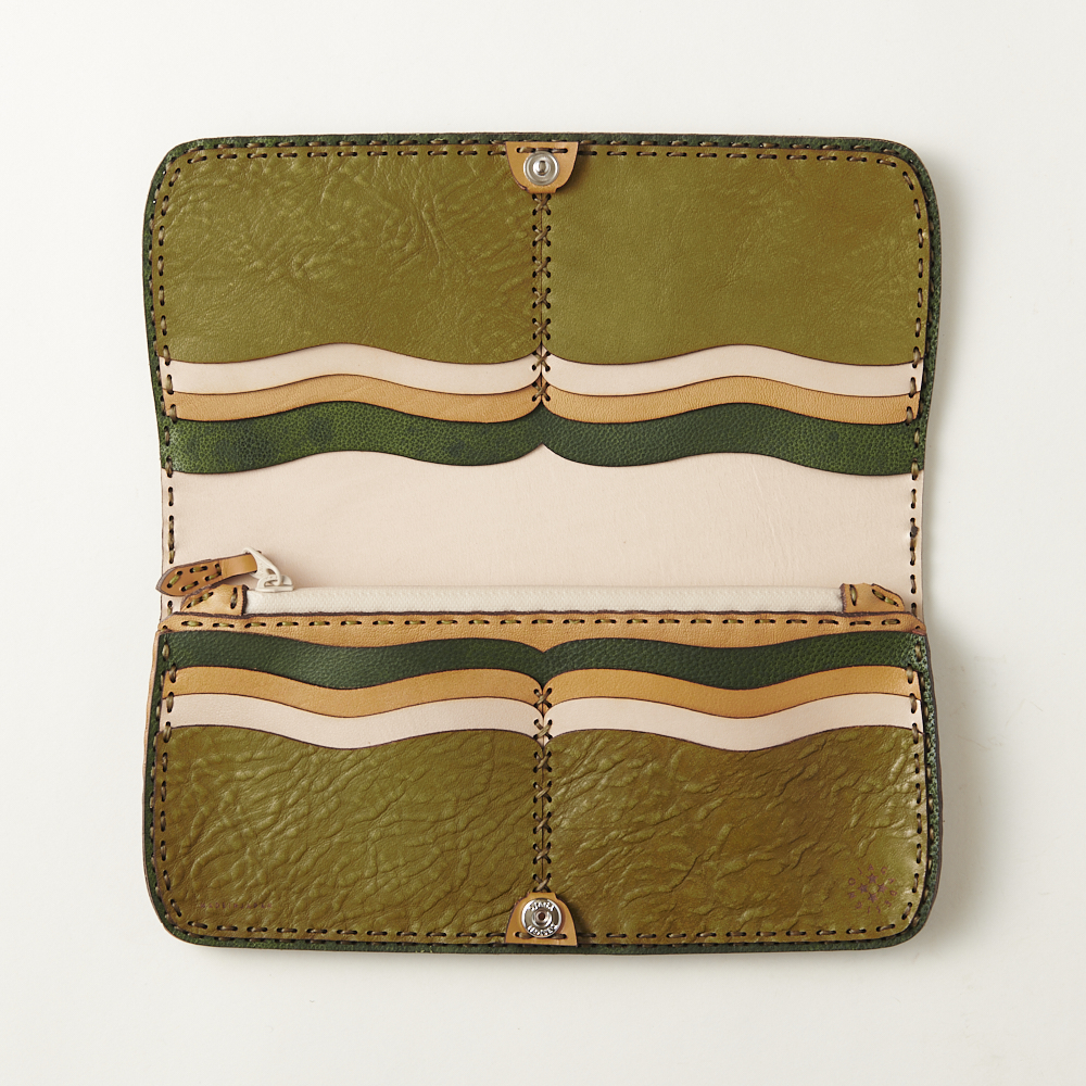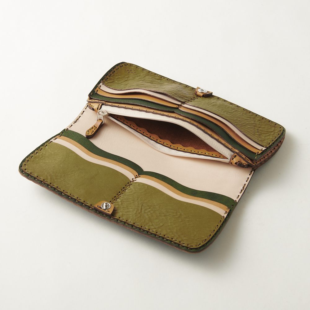 ジップタイプのコインポケットが付いたロングウォレットは、カードポケットにモスクをイメージしたカットを施しました。