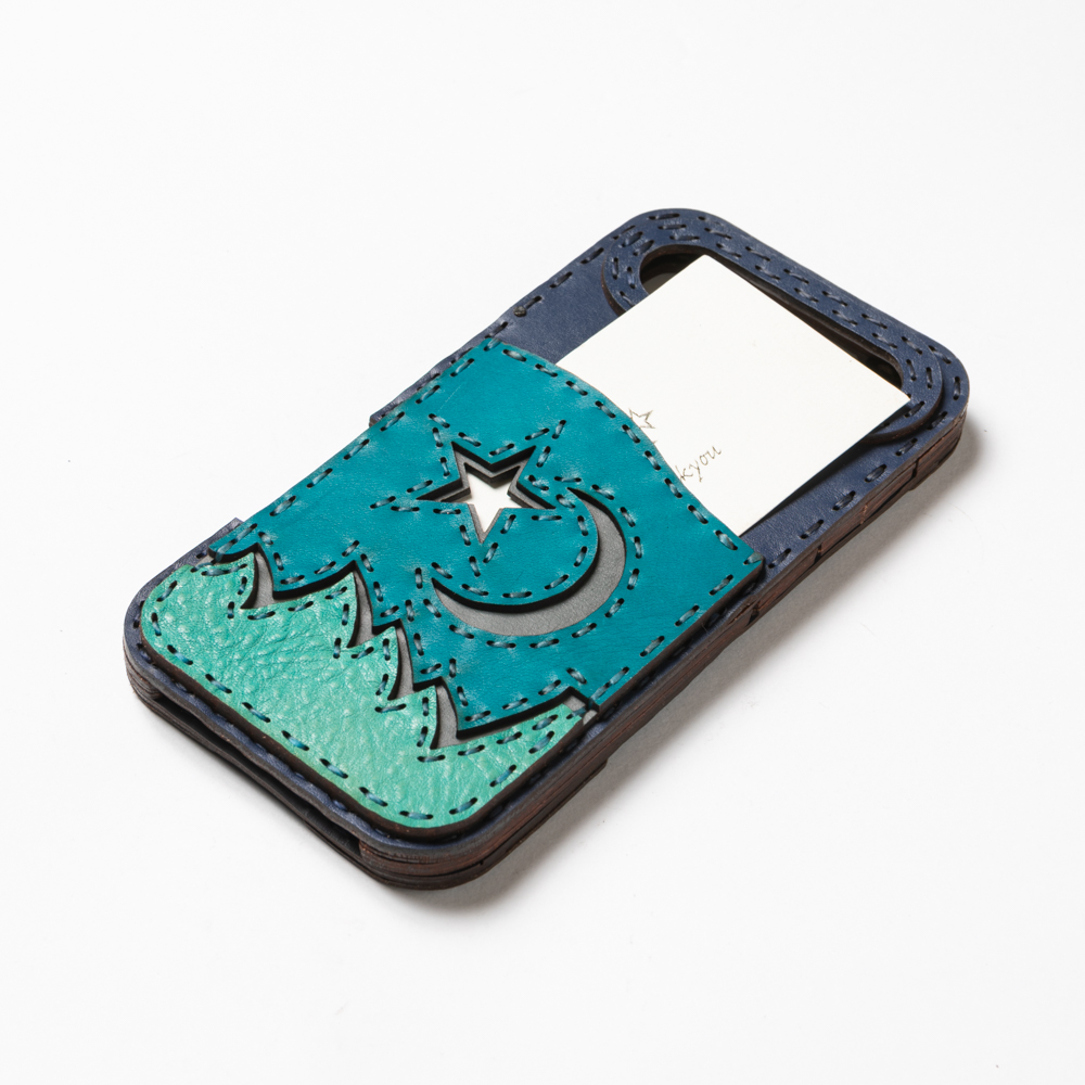 ポケット部分は空に浮かぶ月星と山をデザインし、風景画のような幻想的な仕上がりのロングセラーアイテムです。