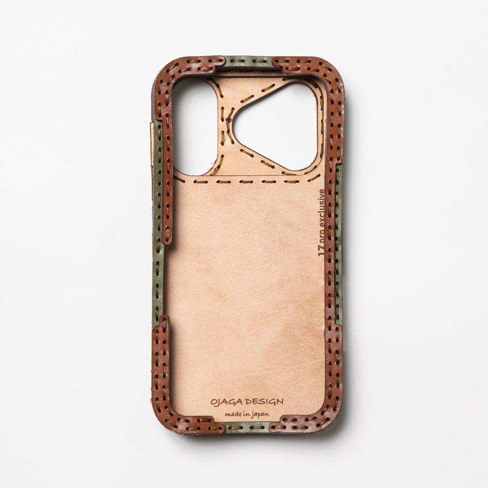 ケース側面をすべてレザーで覆った保護性の高いデザインで、サイドボタンも革の上から操作が可能。