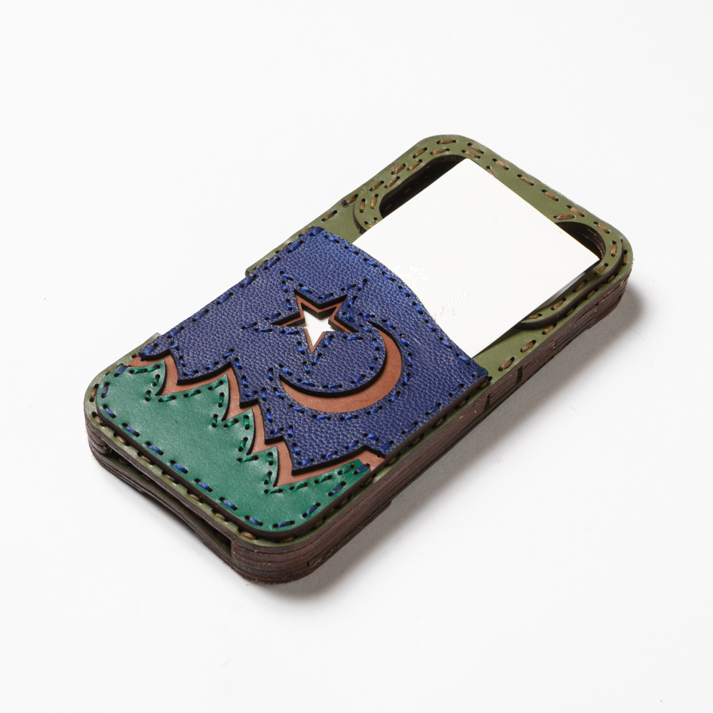 ポケット部分は空に浮かぶ月星と山をデザインし、風景画のような幻想的な仕上がりのロングセラーアイテムです。