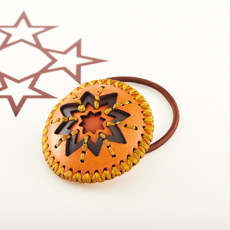 インパクトのあるディティールがポイントの八芒星がデザインされたヘアーバンドです。4層のレザーパーツを使ったことで立体的でカラフルなイメージとなっています。アウトラインにステッチを縁取って細部にまでこだわったアイテムです。