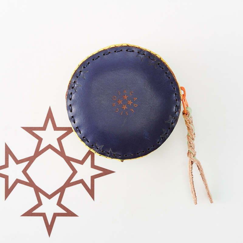 丸いフォルムが印象的な立体感のあるコインケースに、新しいデザインが登場しました。4層のレザーパーツで表現した大きな星の隣に、小さく主張する月がポイントです。ファスナー部分には編み込みされたレザーが付属されているため、使いやすい仕上がりとなりました。コインケースだけでなくミニポーチとしてもお使い頂けます。