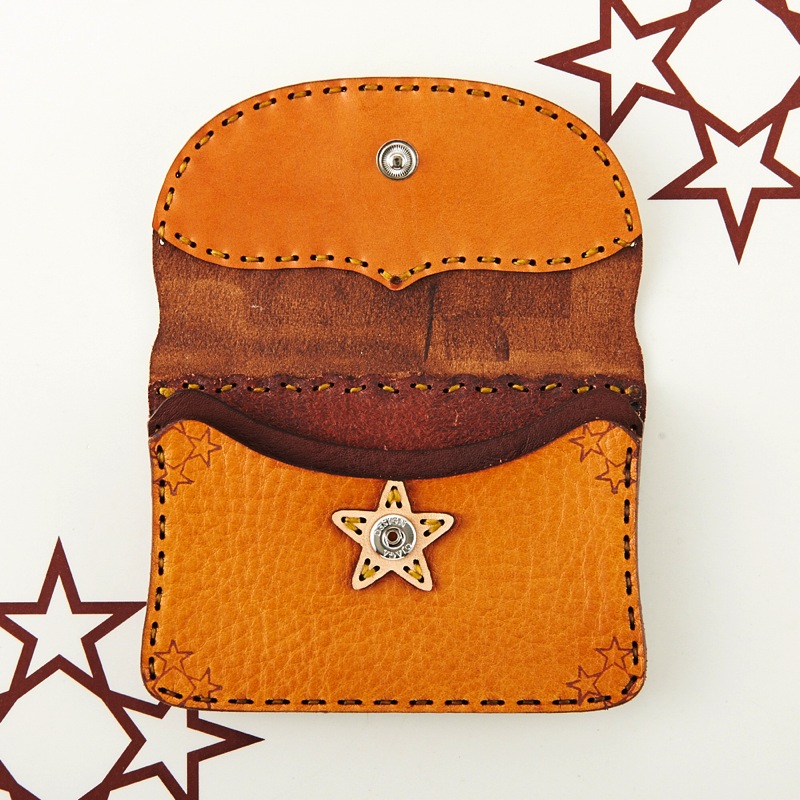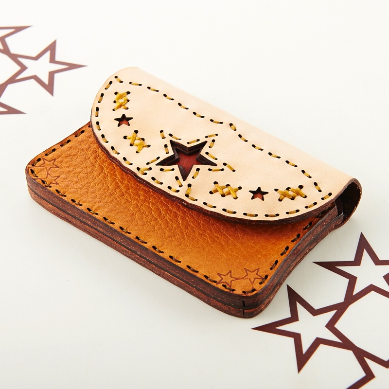 ご要望の多かったアイテムがついに新作で登場。名刺入れとしてもお使い頂けるカードケースです。新色のキャメルレザーを使用し、独特の風合いを楽しめるアイテムとなりました。レザーの重なりがポイントの五芒星とクロスステッチをあしらい、他にはないデザインに。ボタン部分の五芒星もポイントです。