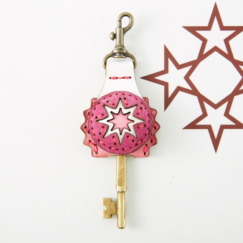 CANDYコレクションからピンクとスカイブルーの2色展開のアイテムが登場。スエードを使用し、革の質感の差をお楽しみ頂けるデザインです。フラップ部分に膨らみを持たせた立体的なデザインが魅力のキーキャップ。八芒星とギザギザしたパーツも絶妙なバランスで仕上がっています。使い込むほど味がでてくる革ならではの風合いをお楽しみください。