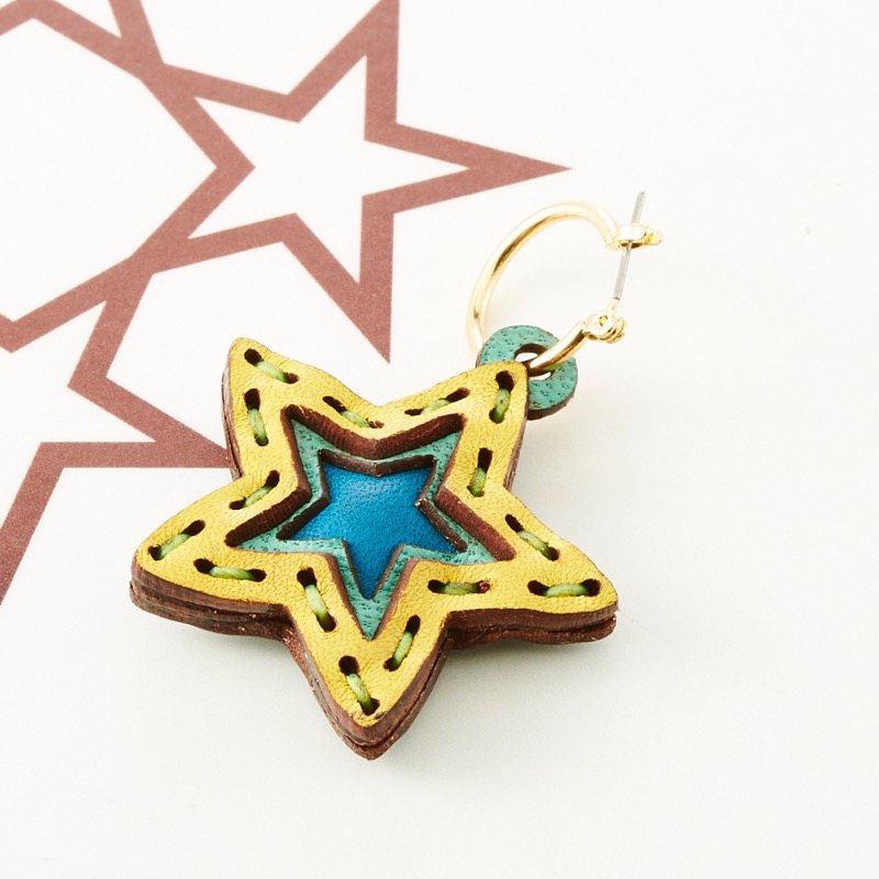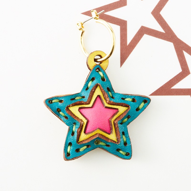 五芒星ピアスです。大ぶりなサイズがワンポイント使いに可愛いらしく仕上げてくれるアイテムです。シンプルなカラーリングの物からポップなカラーリングの物まで、、豊富なバリエーションも嬉しいシリーズです。※片耳用になります。