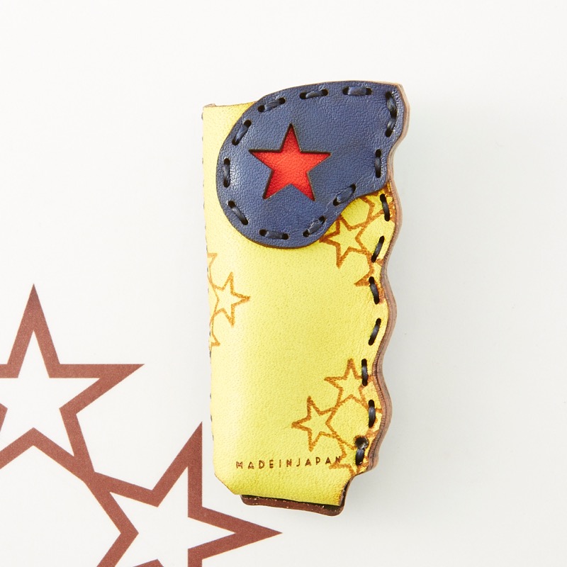 「オジャガデザイン」のロゴマークである五芒星柄がベースとなり、握ったときの手にフィットするフォルムのライターケースです。両面で異なる2つの表情を楽しむことができるものとなっています。BICのライターがぴったり入るサイズです。
