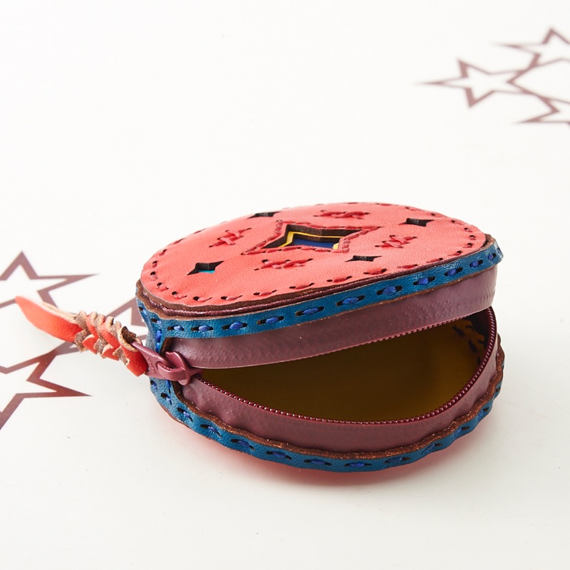 丸いフォルムが印象的な立体感のあるコインケースに、新しいデザインが登場しました。ボディには四芒星を散りばめ、アクセントにクロスステッチを施しました。ファスナー部分には編み込みされたレザーが付属されているため、使いやすい仕上がりです。コインケースだけでなくミニポーチとしてもお使い頂けます。
