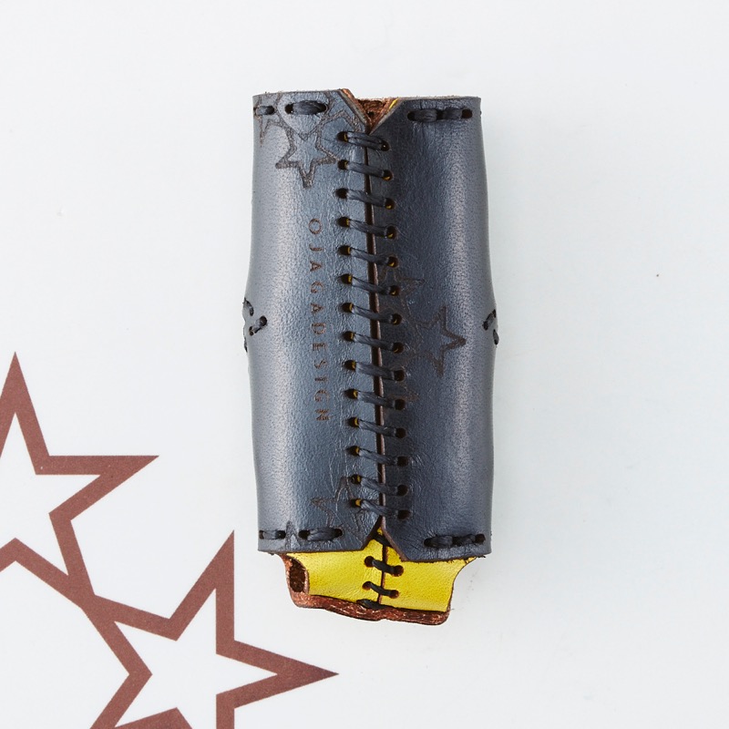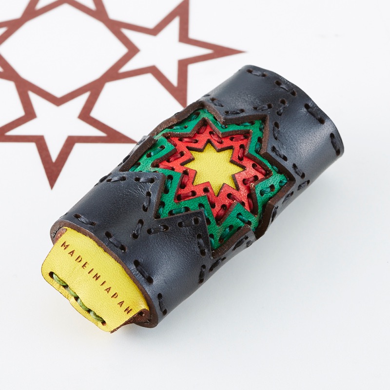 人気のレッド×イエロー×グリーンの配色に、ブラック、ブラウンを基調とした2パターンのカラーリングで仕上げた「CALYPSOコレクション」レザーを贅沢に4枚重ね、八芒星を表現したライターケースです。繊細なレザーのカッティングと細かなステッチで、高級感のある仕上がりとなりました。BICのライターがぴったり入るサイズです。