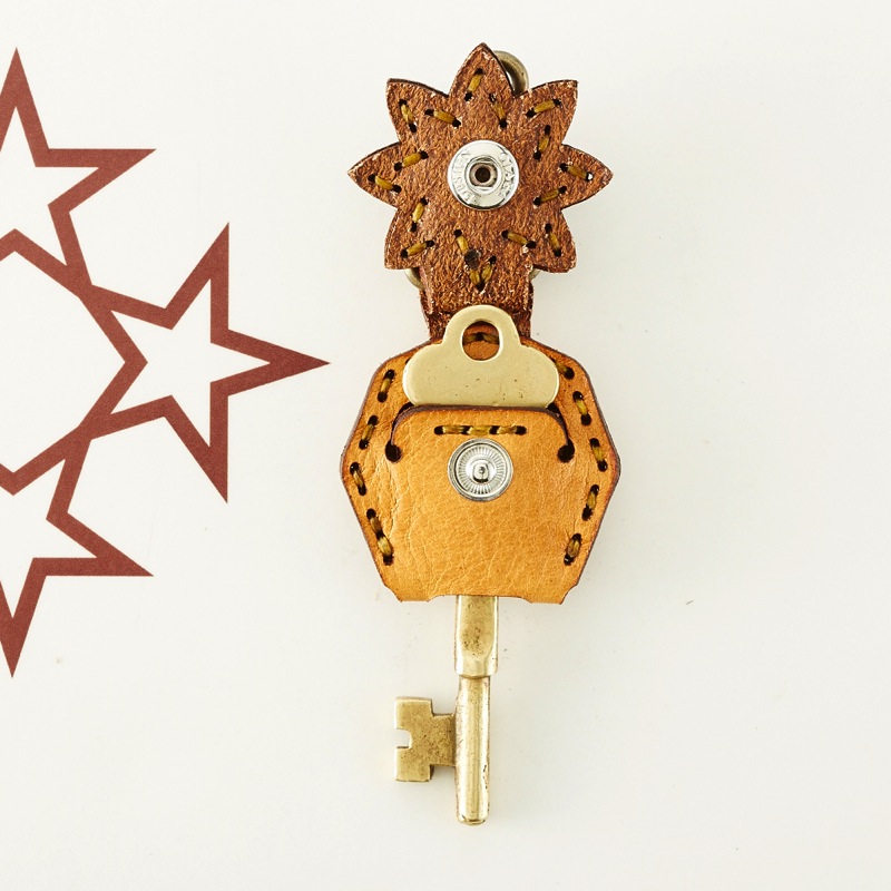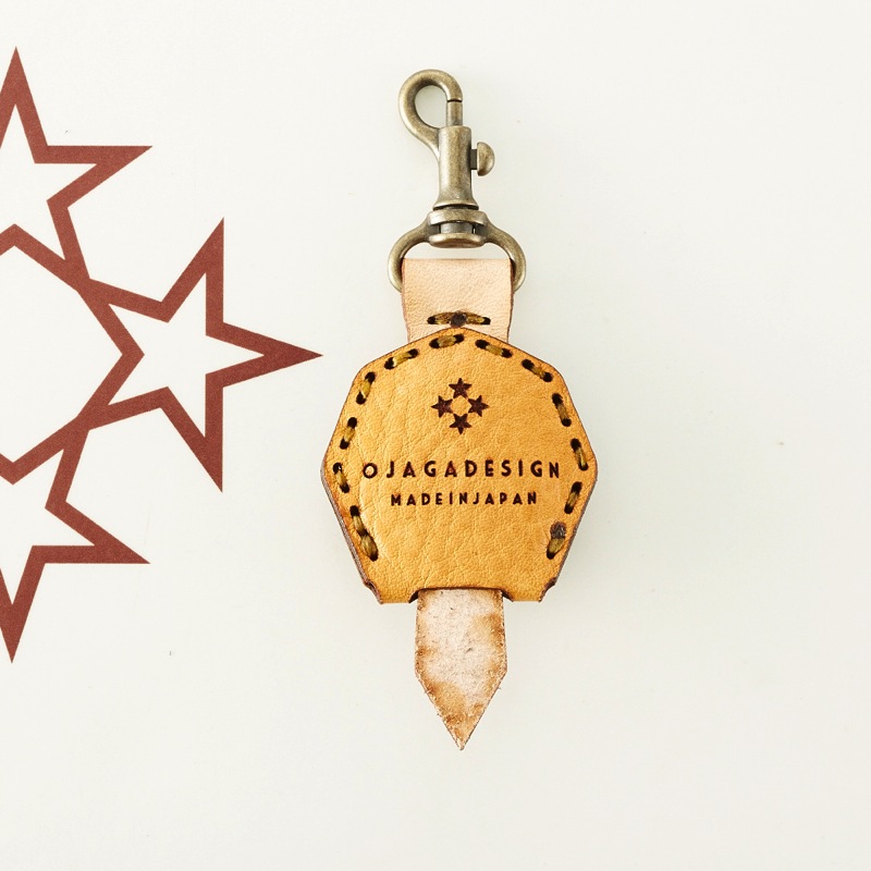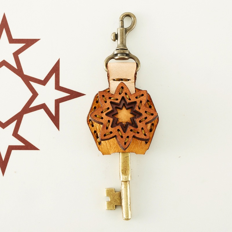 八芒星がデザインされたキーキャップです。三枚の革を重ねて表現した八芒星が印象的な仕上がりとなりました。便利なナスカン付きなので、ベルトループやキーホルダーに付けてお使い頂けます。