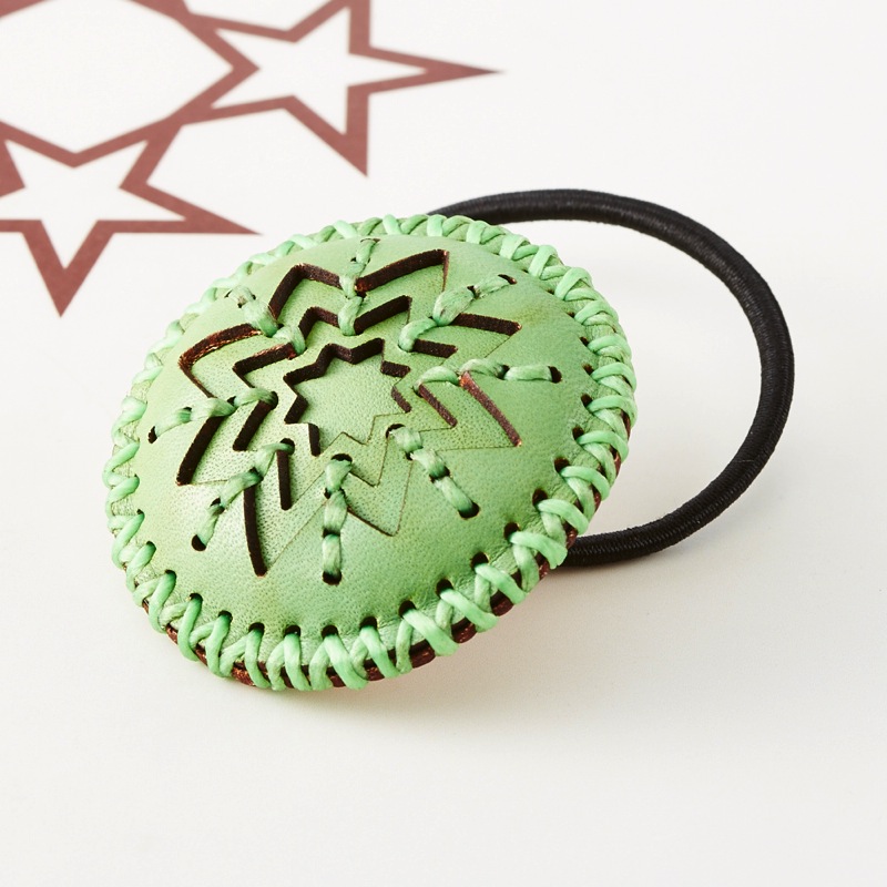 インパクトのあるディティールがポイントの八芒星がデザインされたヘアーバンドです。4層のレザーパーツを使ったことで立体的でカラフルなイメージとなっています。アウトラインにステッチを縁取って細部にまでこだわったアイテムです。