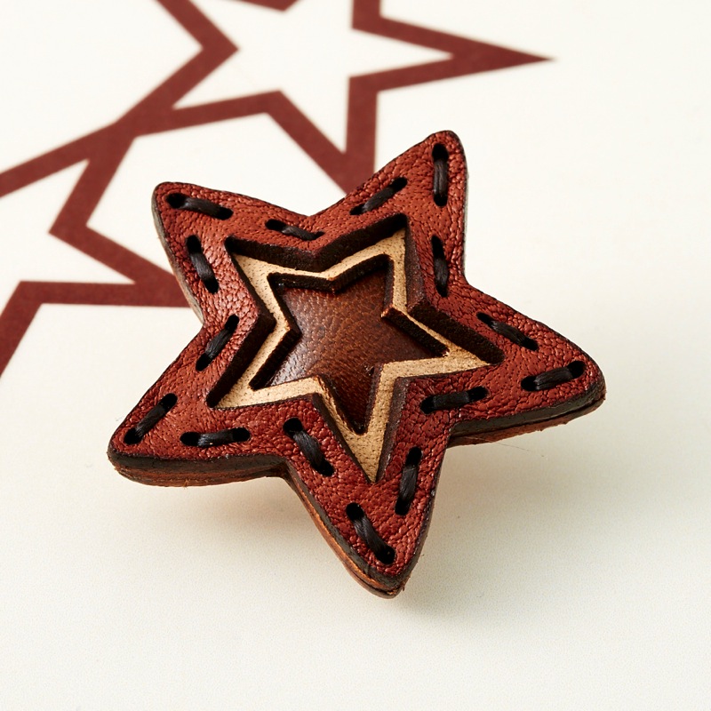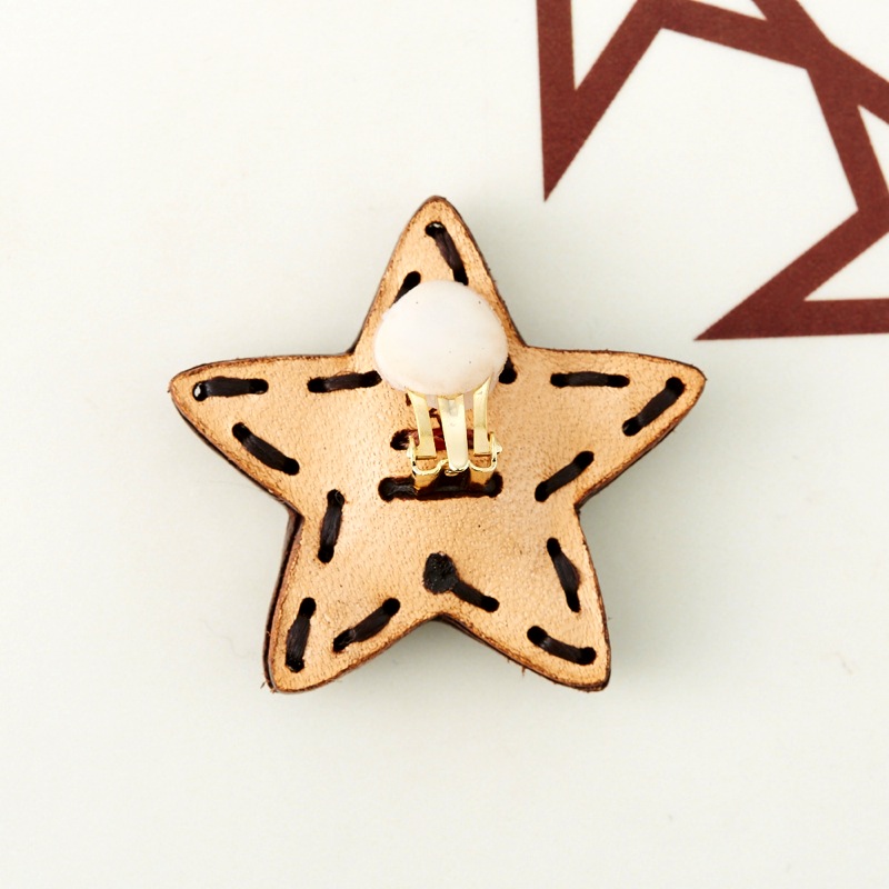 五芒星型の片耳用イヤリングです。三枚の革を重ねた存在感のある仕上がりは、ファッションのアクセントに最適です。耳が痛くなりにくいクリップタイプの金具を使用しております。片耳用なので、左右違ったデザインでのコーディネートもおすすめです。