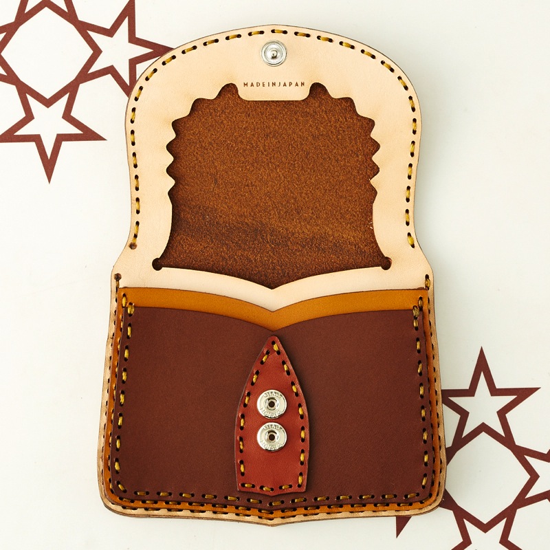 オジャガスターの焼印が入ったコイン&カードケースです。2つ付いたボタンは用途に合わせてサイズを調節できます。カード入れ部分が二箇所付き、収納力も抜群。コンパクトで持ち運びしやすいアイテムです。