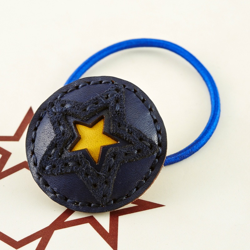 夜空をイメージしたカラーリングのヘアーバンドです。ネイビーは使い込むごとにツヤ感の出るカウレザーと、しっとりとした手触りのスエードの二種類の革を使用。マリーゴールドは深みのあるイエローで、夜空に浮かぶ幻想的な月と星を表現しました。丸く膨らみをもった立体感のあるボディに、大きな五芒星のデザインがインパクトのある仕上がりとなっています。