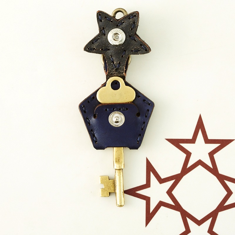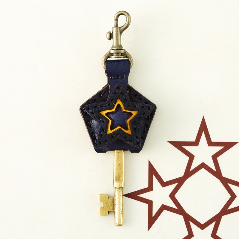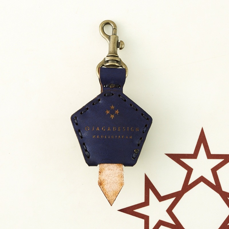 ベースの五角形の上に3枚の革の五芒星を組み合わせた、立体感のある仕上がりです。