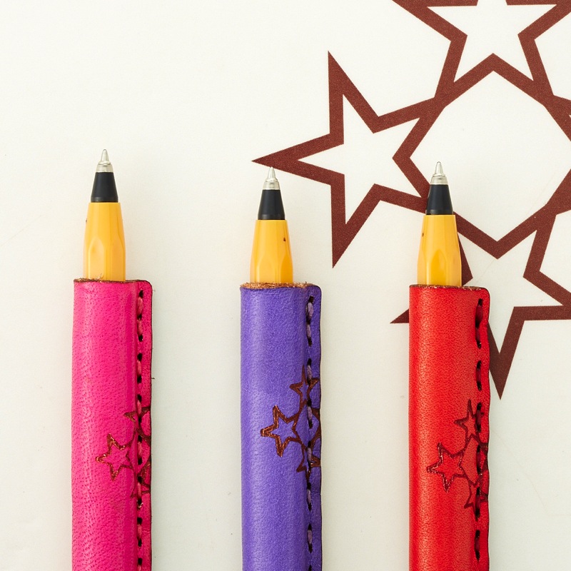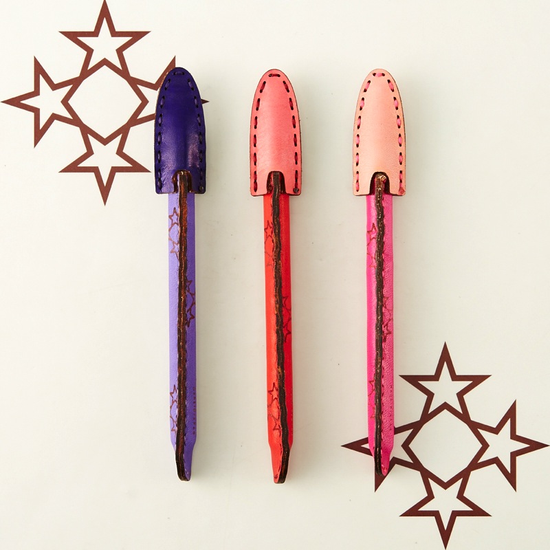 焼き印を施したシンプルなペンカバーです。よく使うペンをおしゃれに彩ることが出来る、遊び心が溢れるアイテム。レザー本来の質感を手で楽しめ、使い込むごとに革が手に馴染むので持ちやすさがアップします。3本セットなので、ご友人やご家族とのシェアもおすすめ。最大径Φ13.7mm/全長149mmのペンが入るサイズです。