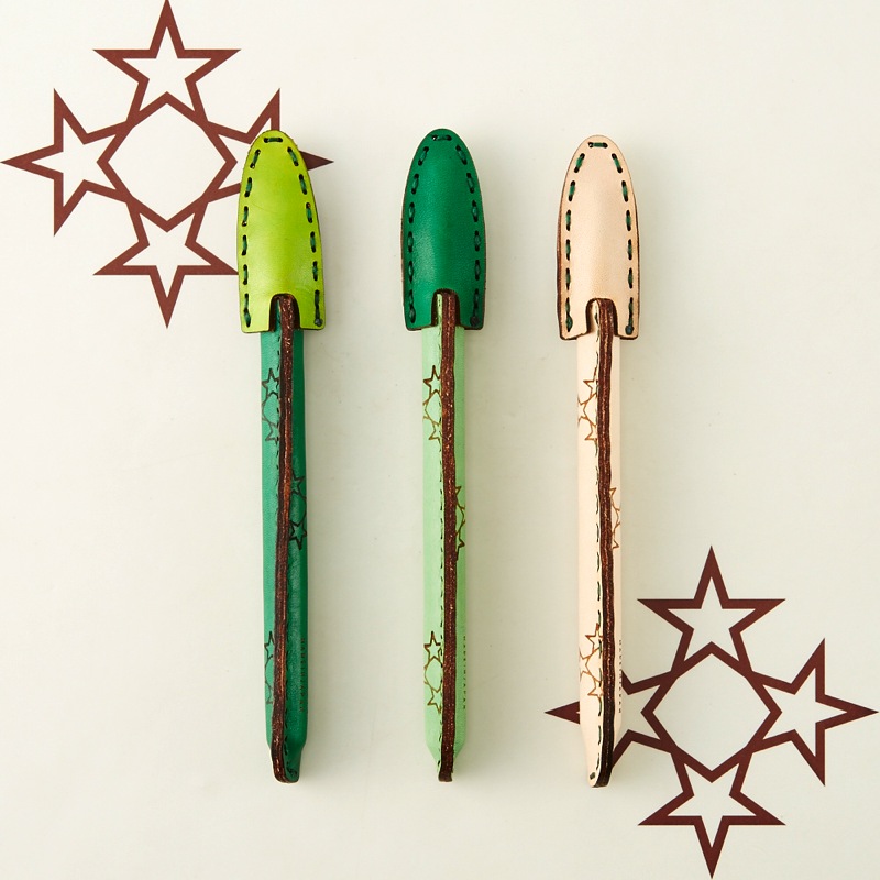焼き印を施したシンプルなペンカバーです。よく使うペンをおしゃれに彩ることが出来る、遊び心が溢れるアイテム。レザー本来の質感を手で楽しめ、使い込むごとに革が手に馴染むので持ちやすさがアップします。3本セットなので、ご友人やご家族とのシェアもおすすめ。最大径Φ13.7mm/全長149mmのペンが入るサイズです。