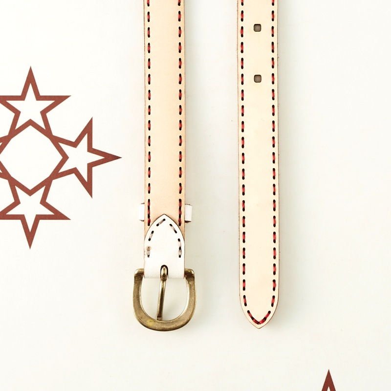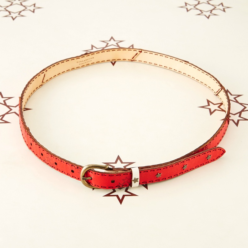 発色の良いレザーにオジャガスターの焼き印を施し、さりげない星スタッズがワンポイントになったベルトです。焼き印とスタッズのみのシンプルさを追求したデザイン。使い込むごとにしなやかさとツヤ感が増し、オジャガデザインのレザーならではの質感や経年変化をお楽しみ頂けます。シンプルな中にも存在感のある星スタッズがワンポイントになった、どんなファッションにも合わせやすい仕上がりです。